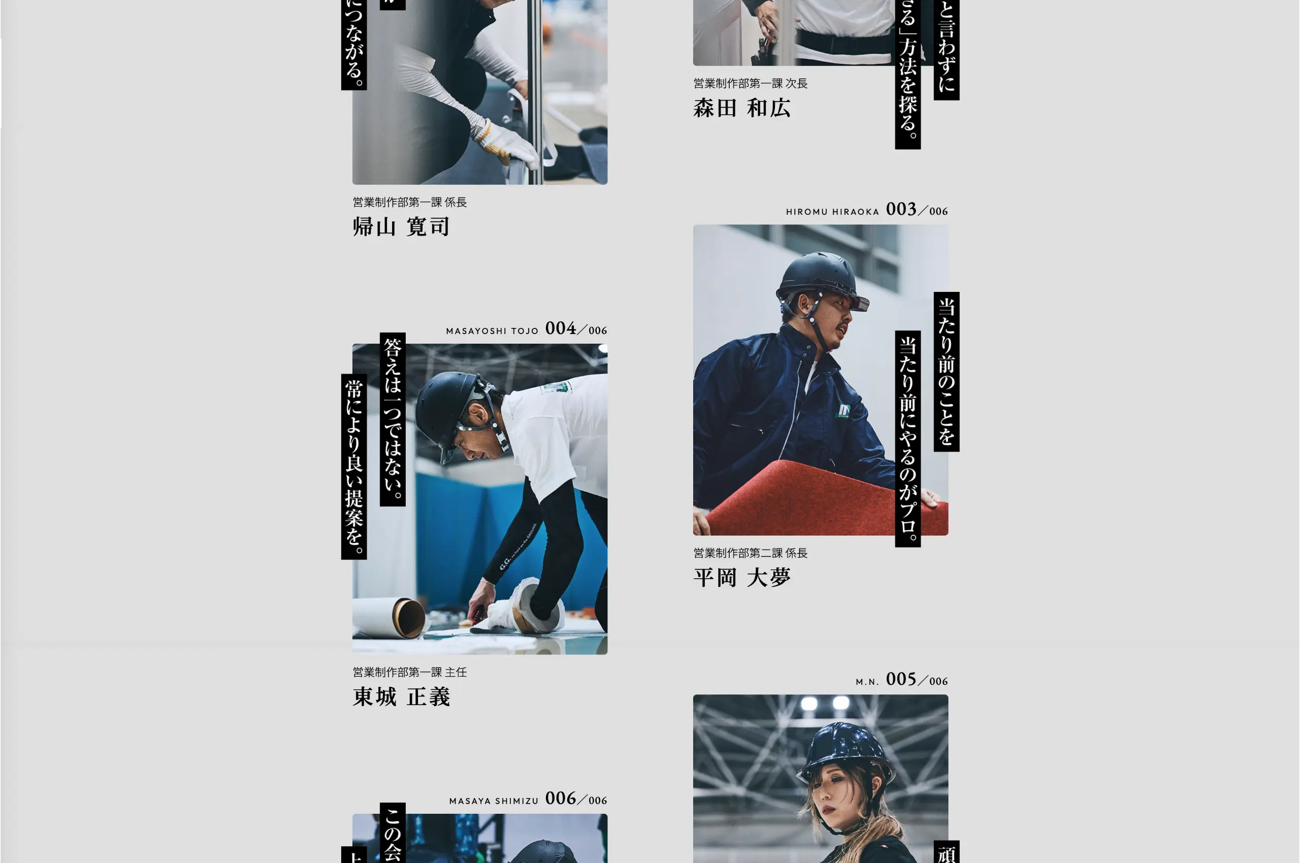 全社タグライン「BE PROFESSIONAL 現場を輝かせるプロフェッショナル」を開発し、働き方の実態(現場/内勤、代休、長期休暇)と制度改善の取り組みも可視化。これらを基軸にWEBサイトを構築し、会社案内から求人導線まで一気通貫で設計しました。仕事の誇りと健やかな環境を具体で示し、共感にもとづく応募の質向上を狙った構造を整備しました。